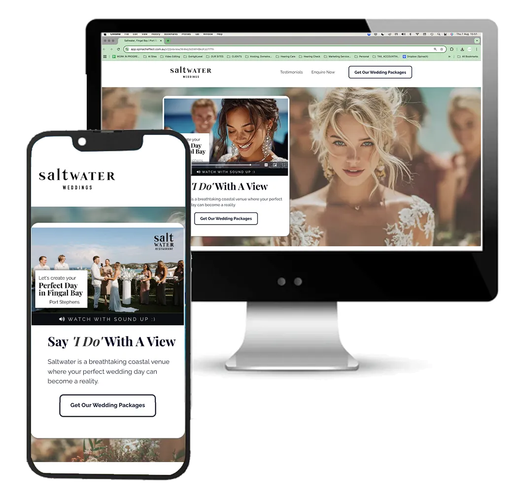 The landing page was crafted to turn interest into qualified enquiries through a balance of beauty, clarity, and function. Built around emotional storytelling and data-driven design, it gives couples an instant sense of what made Saltwater unique and makes it effortless to take the next step.