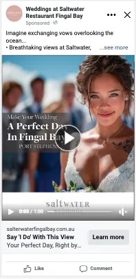 We crafted cinematic ads, emotional storytelling, and a consistent brand voice that positioned Saltwater as the perfect coastal wedding destination.